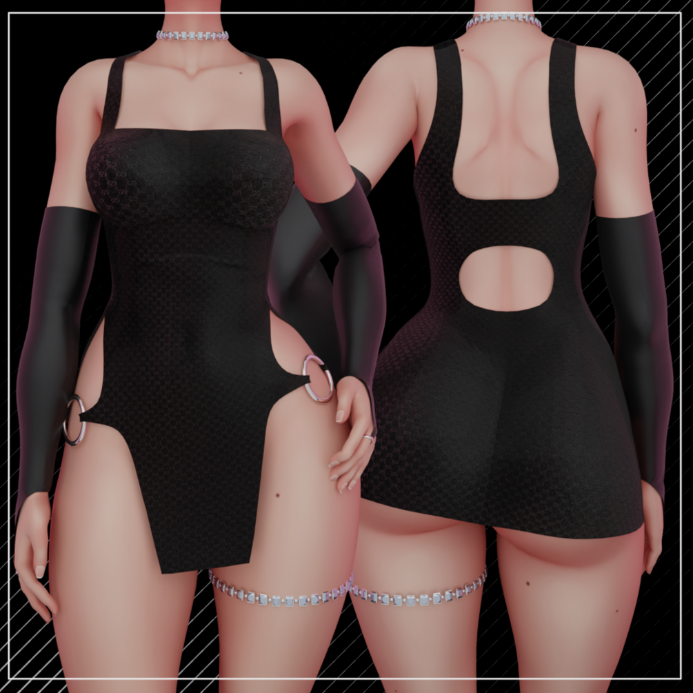 FULLY RIGGED Bodycon Dress, Gloves, and Jewelry, fitted and weighted to Zinpia's VRBase (EGirl) (linked below)